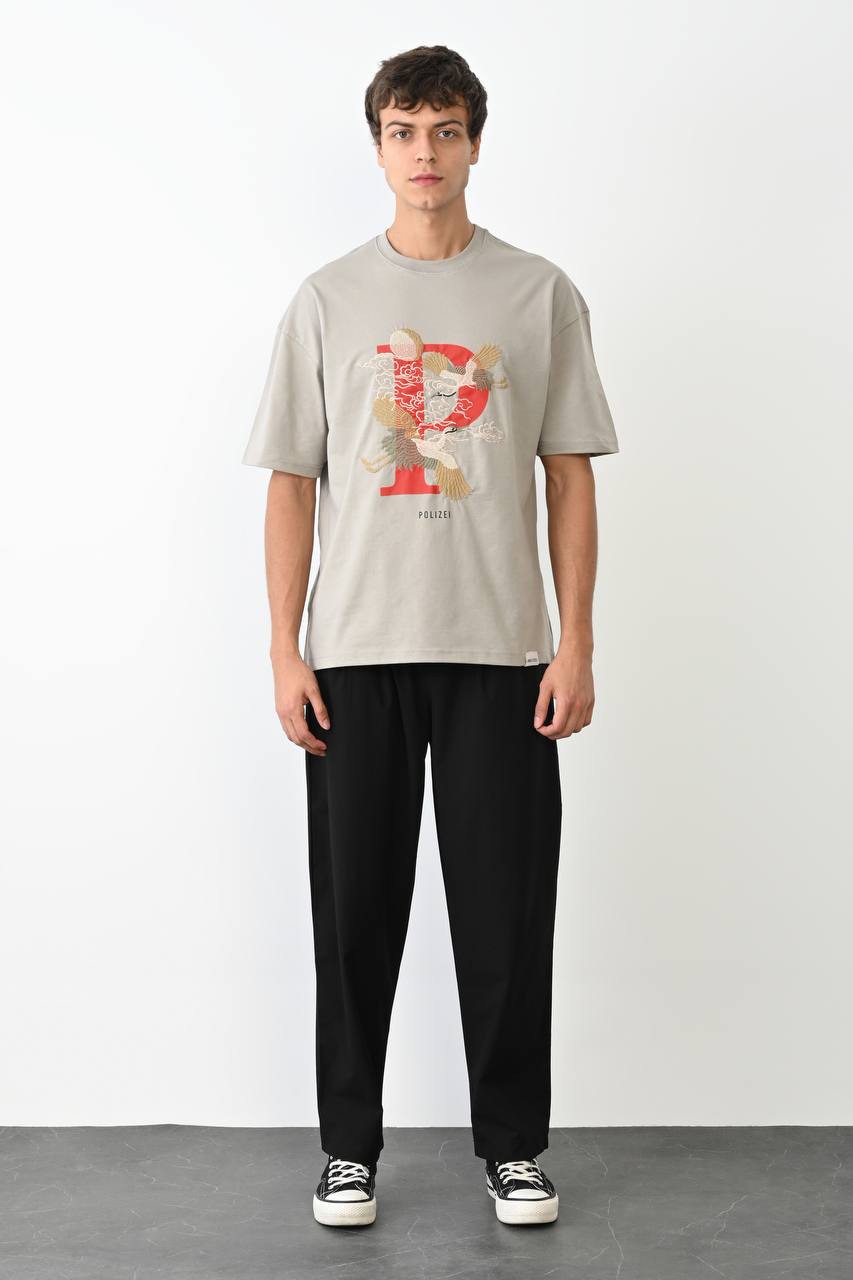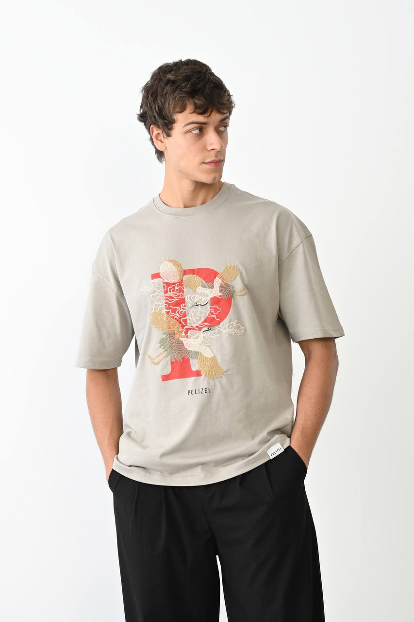 Crane Nakışlı Oversize Unisex T-shirt