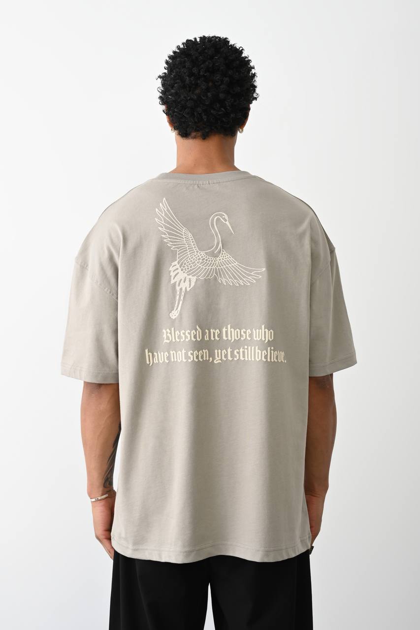 Crane Nakışlı Oversize Unisex T-shirt