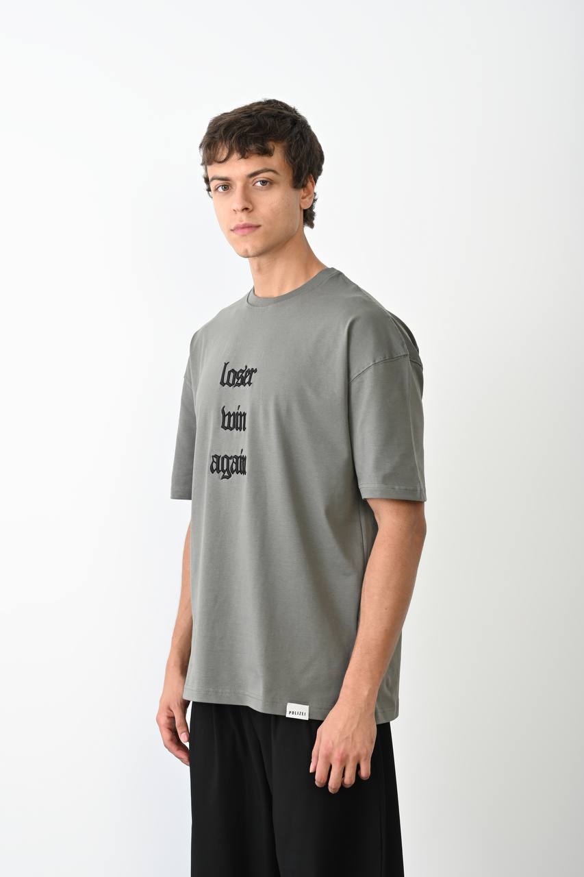 LOSER WIN AGAIN Nakışlı Oversize Unisex T-shirt